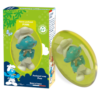 Ce savon délicatement parfumé à la poire nettoie la peau des petits et des grands. Se laver devient un jeu d'enfant grâce aux figurines Schtroumpfs à collectionner !