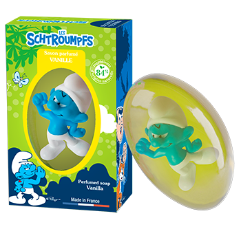 Ce savon délicatement parfumé à la Vanille nettoie la peau des petits et des grands. Se laver devient un jeu d'enfant grâce aux figurines Schtroumpf à collectionner !